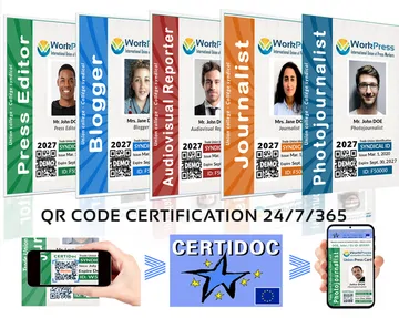 Your internationally recognized professional Press Card (1) will certify your Press Status and the protections (Reporter’s Privilege) afforded by national laws and international treaties. Furthermore, to enhance your professional activities, you will have the opportunity to select the Union College (2) that aligns with your primary profession. This choice will also grant you access to services dedicated to that activity.